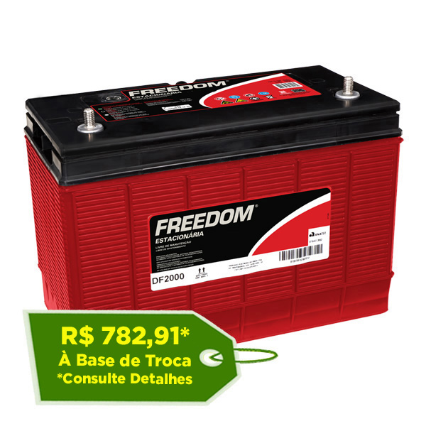 - A bateria estacionária Freedom é uma bateria livre de manutenção, portanto não necessita de reposição de água ou eletrólito durante sua vida útil.