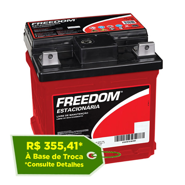 - A bateria estacionária Freedom é uma bateria livre de manutenção, portanto não necessita de reposição de água ou eletrólito durante sua vida útil.
