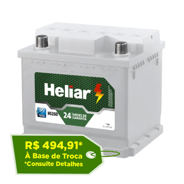 Bateria Heliar 50Ah – HE50GD ( Cx. Alta ) – 24 Meses de Garantia