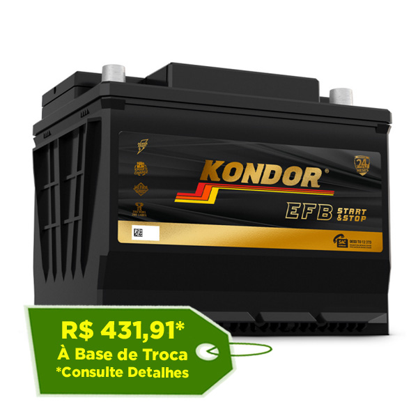 As baterias Kondor EFB são a evolução das baterias tradicionais. Trabalham com estado parcial de carga, o que as baterias tradicionais não suportam.