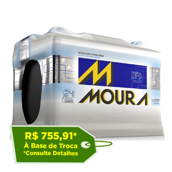 A Bateria Moura EFB 60Ah – MF60AD são ideais para veículos de alta performance que exigem maior capacidade cíclica das baterias. Possuem vida útil até 50% superior à média do mercado. Computador de bordo, ar-condicionado, GPS, trava elétrica, etc. Nas últimas duas décadas os acessórios elétricos dos veículos cresceram expressivamente. No entanto, o aumento da necessidade do uso de eletricidade causa o desgaste mais rápido da bateria. Diante deste cenário, os produtos da Moura são destaque em qualidade. Sempre investindo em tecnologia e inovação, a empresa reforça seu compromisso com o consumidor e apresenta a renovação de sua linha de acumuladores de 40 a 200 amperes-hora, que atendem de veículos leves a pesados. A Moura realizou melhorias, chegando a uma linha com maior robustez e máxima resistência a condições adversas de uso. Entre as novidades, o prazo de garantia de 18 meses para baterias de até 75 amperes-hora. Mais uma vez a Moura promove uma evolução nos seus produtos para atender cada vez melhor os consumidores.
